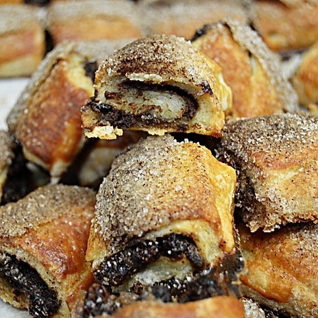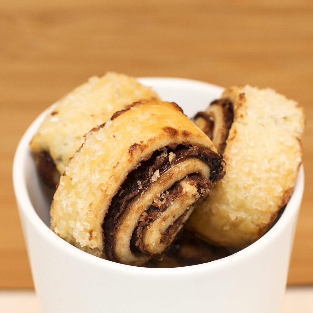 Let’s get a good description of “Rugelach.” (My definition, which is “ A delicious, rich cookie-pastry, even more scrumptious if raspberry jam is involved,” probably won’t cut it so let’s move on,) According to noted Jewish cuisine cookbook author, Joan Nathan, Rugelach are crescent-shaped cookies, originating in Europe. They’ve become one of the most mainstream Jewish desserts.